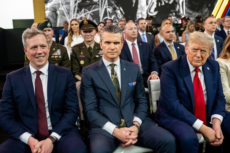 SecArmy Driscoll with SecDef Hegseth and President Trump in June. Image: The White House.